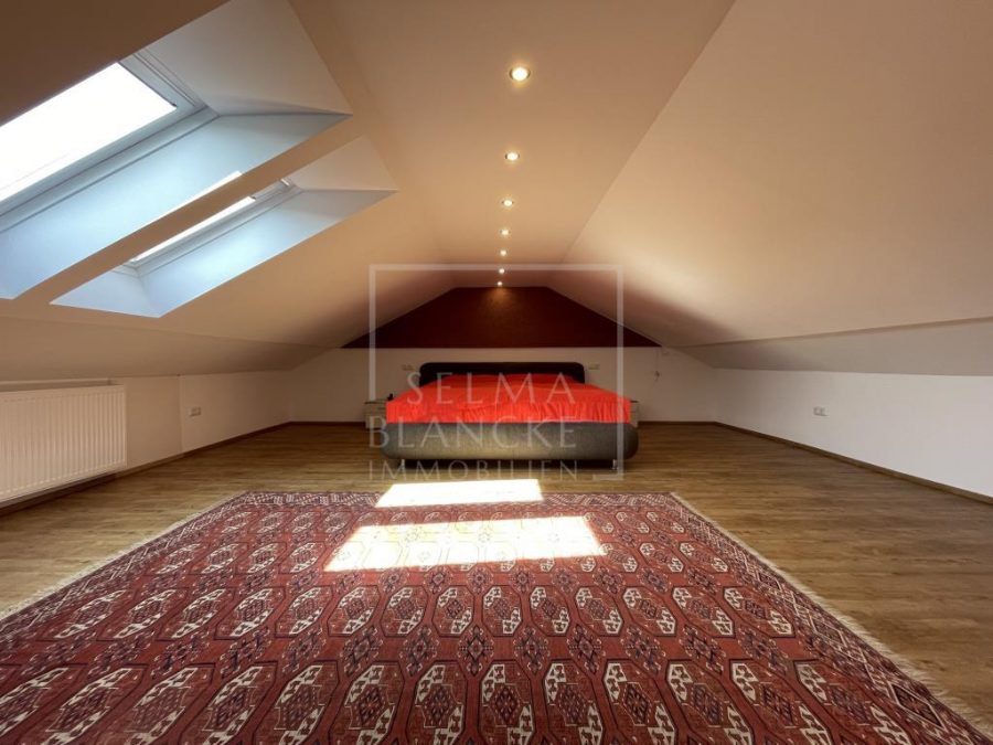 Das hochwertig ausgebaute Dachgeschoss mit eigenem Badezimmer wird aktuell als Schlafbereich genutzt – die Grundfläche des Dachgeschosses beträgt dabei ca. 82 m², die nutzbare Fläche inkl. der Dachschrägen ca. 72 m². Obwohl das Dachgeschoss durch die Eigentümer als Wohnraum genutzt wird, bitten wir zu beachten, dass die Deckenhöhe unter 2 Metern liegt und dadurch die DG-Fläche nicht in die Wohnflächenberechnung einbezogen werden konnte – sie ist in den Flächenangaben mit ca. 72 m² Nutzfläche einberechnet.