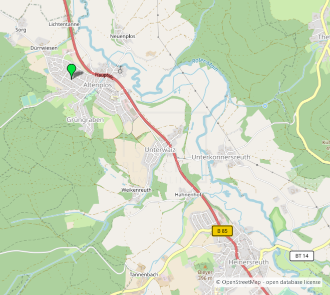 Die nächste Bushaltestelle ist 600 Meter entfernt und fußläufig in 8 Minuten erreichbar. An Werktagen fahren zwischen Bayreuth u. Kulmbach über Altenplos stündlich Omnibusse und im Abschnitt Bayreuth-Altenplos-Neudrossenfeld sogar im Halbstundentakt.