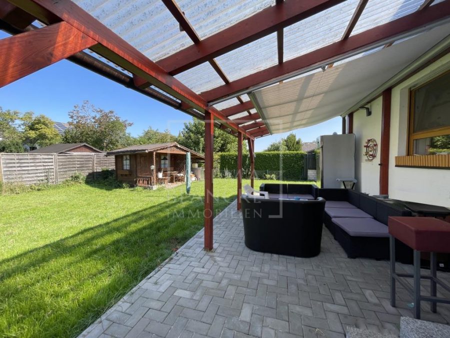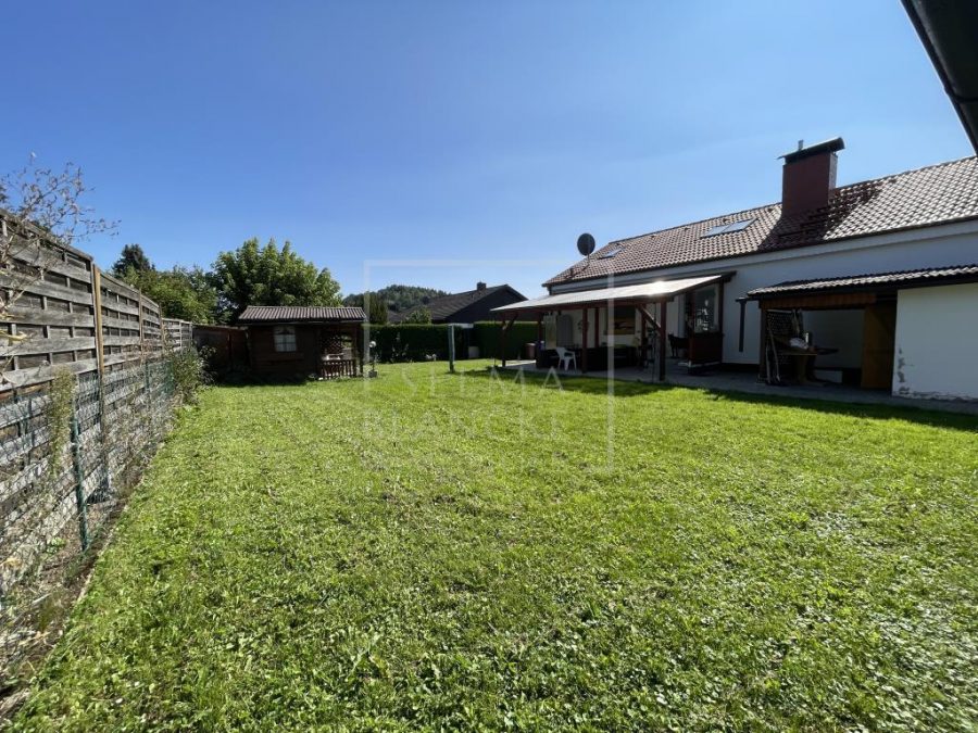 Die Grundstücksfläche ist überwiegend als pflegeleichte Rasenfläche angelegt. Für Bastler und Hobbygärtner gibt es zwei Gartenhäuser, ein Gewächshaus, sowie viel Platz für Fahrräder, Motorräder und Co.