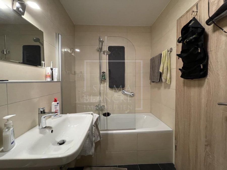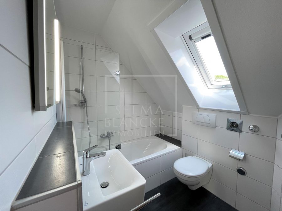 • Badezimmer mit Wanne, WC, Waschbecken, Waschmaschinenanschluss
