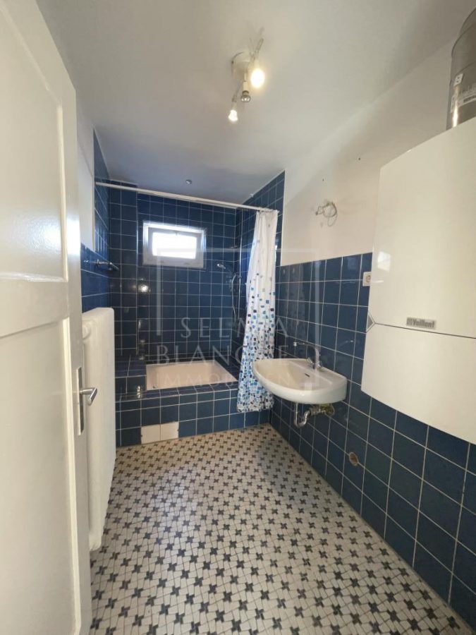 - Badezimmer mit großzügiger Dusche, Waschbecken u. Waschmaschinenanschluss