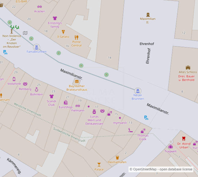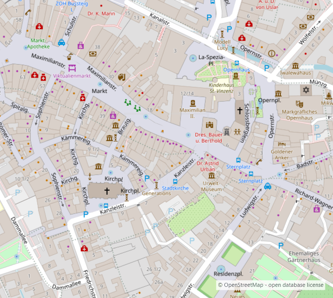 Das Stadthaus befindet sich im Herzen der Fußgängerzone - direkt vor der Haustüre befinden sich verschiedenste Geschäfte für den täglichen Bedarf, Arztpraxen, Gastronomiebetriebe und kulturelle Einrichtungen. Der zentrale Busbahnhof ZOH ist in zwei und der Bahnhof in 10 Gehminuten erreicht. Ideal ist auch die Erreichbarkeit der Universität - über den schönen Hofgarten ist die Uni in 6-7 Minuten mit dem Fahrrad erreichbar.