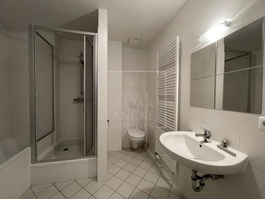 - helles Bad mit Wanne, Dusche, WC und WM-Anschluss